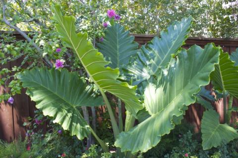 Last October, Paul and I were shopping at Archie's Gardenland. All throughout the store, they had these giant caladiums. We bought several pots and thought they would be the perfect solution to adding some height in the garden. Unfortunately, these are the only two that did what they were supposed to do, but they were amazingly beautiful today.