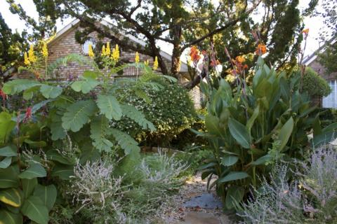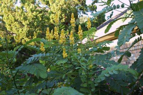 Last year we planted our first Candle Tree. It is an annual for our zone, so we dug it up and bought a new one this spring. We had such a mild winter that it reseeded itself and made 7 more Candle Trees on the other side of the pathway. The flower is magnificent and looks like wax, the cluster of flowers look like a candelabra. It really gave our North Texas garden a very tropical look. Just lovely.