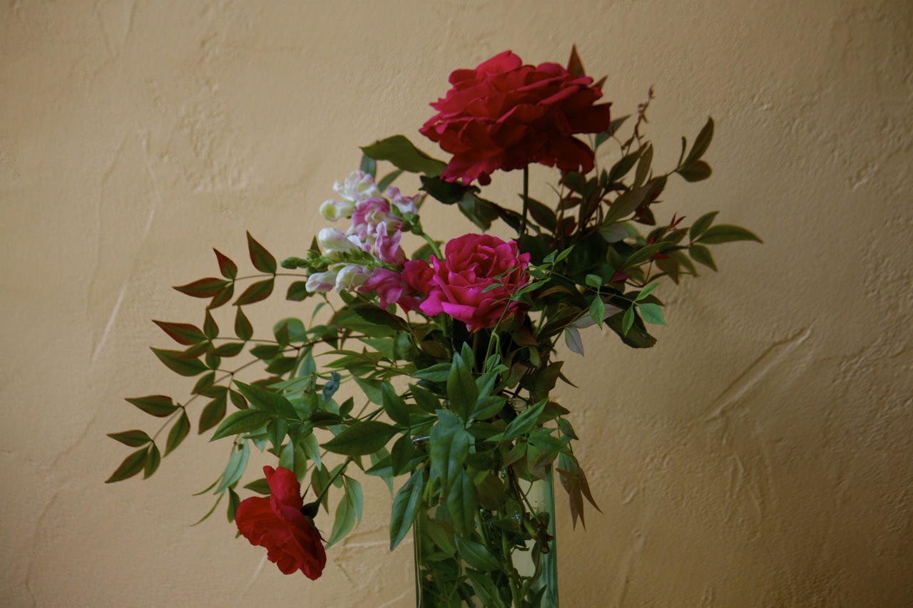 5 Years ago on Mother's Day, Jennifer created this blog for me. Here I have had a place to post pictures and journal about our garden. Below is a picture of our First Bloom of 2013 in the Rose Garden at P&B Garden, along with an arrangement I made from the blooms and nandina bush for filler. What a great gift that continues to live on. Thank you again Jennifer and Brian for this great idea. Love, Mom