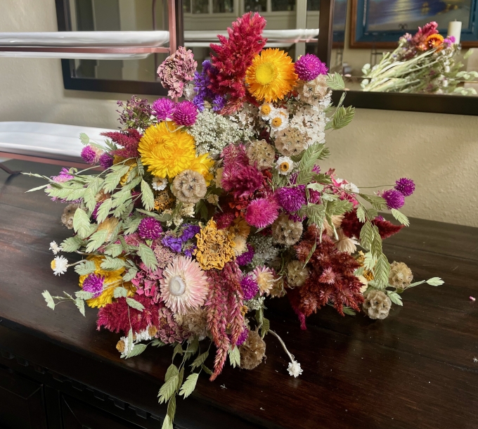 Very close to our home is a lovely flower farm in Coppell called Bishop Hill Farm https://bishophillfarmflowers.com/shop/ Amanda is the owner and very knowledgeable on all aspects of flower farming, arranging and drying. We purchased these beautiful bouquets to hang in our conservatory room that were all grown on her farm. I also took her class so I can try this myself someday. What a lovely way to have the flowers of our gardens live on throughout the year. Thank you Amanda.