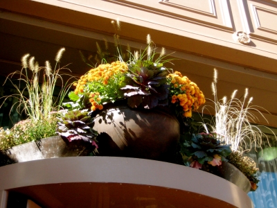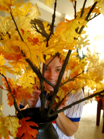 I just got back from Maine and it was definitely fall there but here in P&B Garden everything was still green and roses were still blooming. So, I had to make my own fall for Halloween this Friday so it would be festive for Jack when he visits.
