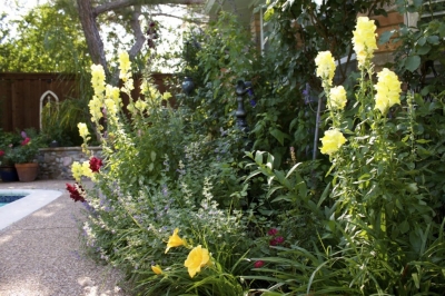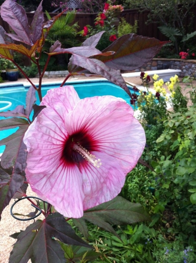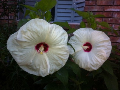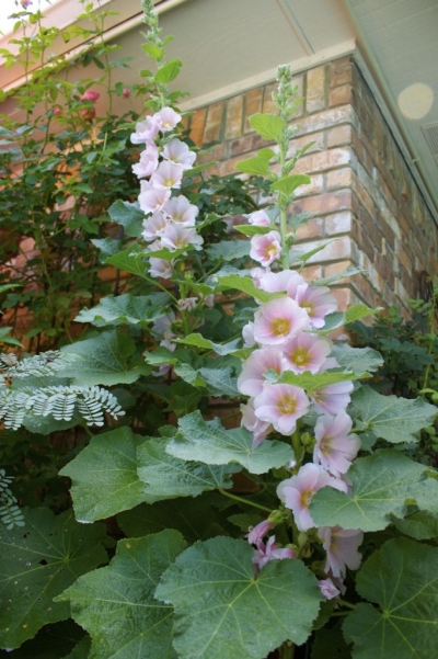 Texas soil is far cry from the rich earth in North Dakota where my Grandmother grew her hollyhocks. I have been trying for several years to carry on her tradition and get them to grow here but they tend to get rust on their leaves. I finally got one to do pretty good in the back yard this year.