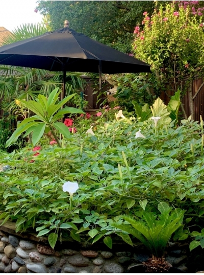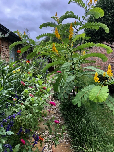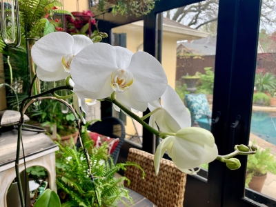 Still at home working during the pandemic but this beauty is right outside my office window.  This beautiful perennial does very well in Texas and comes back every year.  Be careful of a white fungus that develops on the trunk, if not cared for it leads to the loss of the plant.  I feed with ros