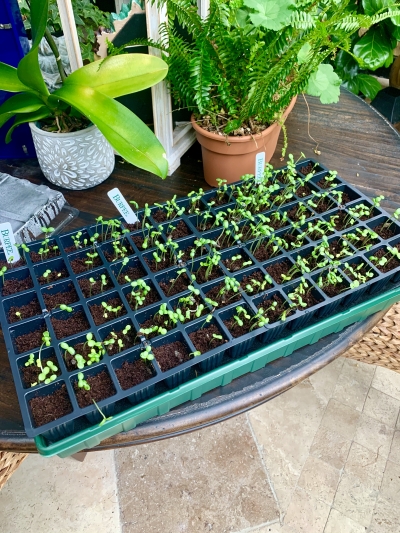 With nurseries off limits I decided to try seeds this year.  This was a familiar site at my house growing up.  Mom had a light table in the basement and each year she started her marigold seeds when there was still snow on the ground in Chicago.  I decided to try different variaties of zinnias.