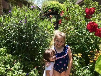 It was a fun day at P&B Garden today.  After not seeing the girls run around in our yard since March, we finally got to watch them swim, laugh and giggle up a storm.   Grandma B visited from behind the glass but enjoyed every minute of watching them.  Grandpa social distanced with John Paul