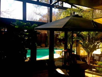We got to have Brian here for a while this summer. Now he is moving on to the next adventure, but he won't be as far away this time. Here is a picture Brian took from his perspective of P&B Garden after he cleaned the pool. We loved having you home, Brian !!