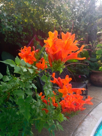 Our candle trees are lovely this year and their blooms mean that fall is near. I am so grateful to have this beautiful garden surrounding my house that I can view and enjoy from every window.