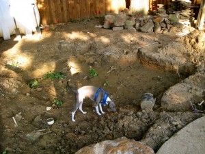 Dino Sekin came over to PB Garden Sunday to check out the progress on the Shade Garden project. He noticed drainage pipes are starting to be laid in the side garden.