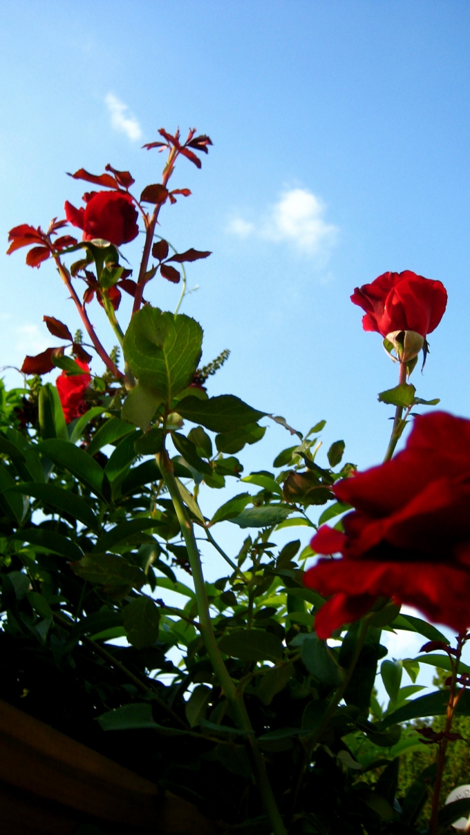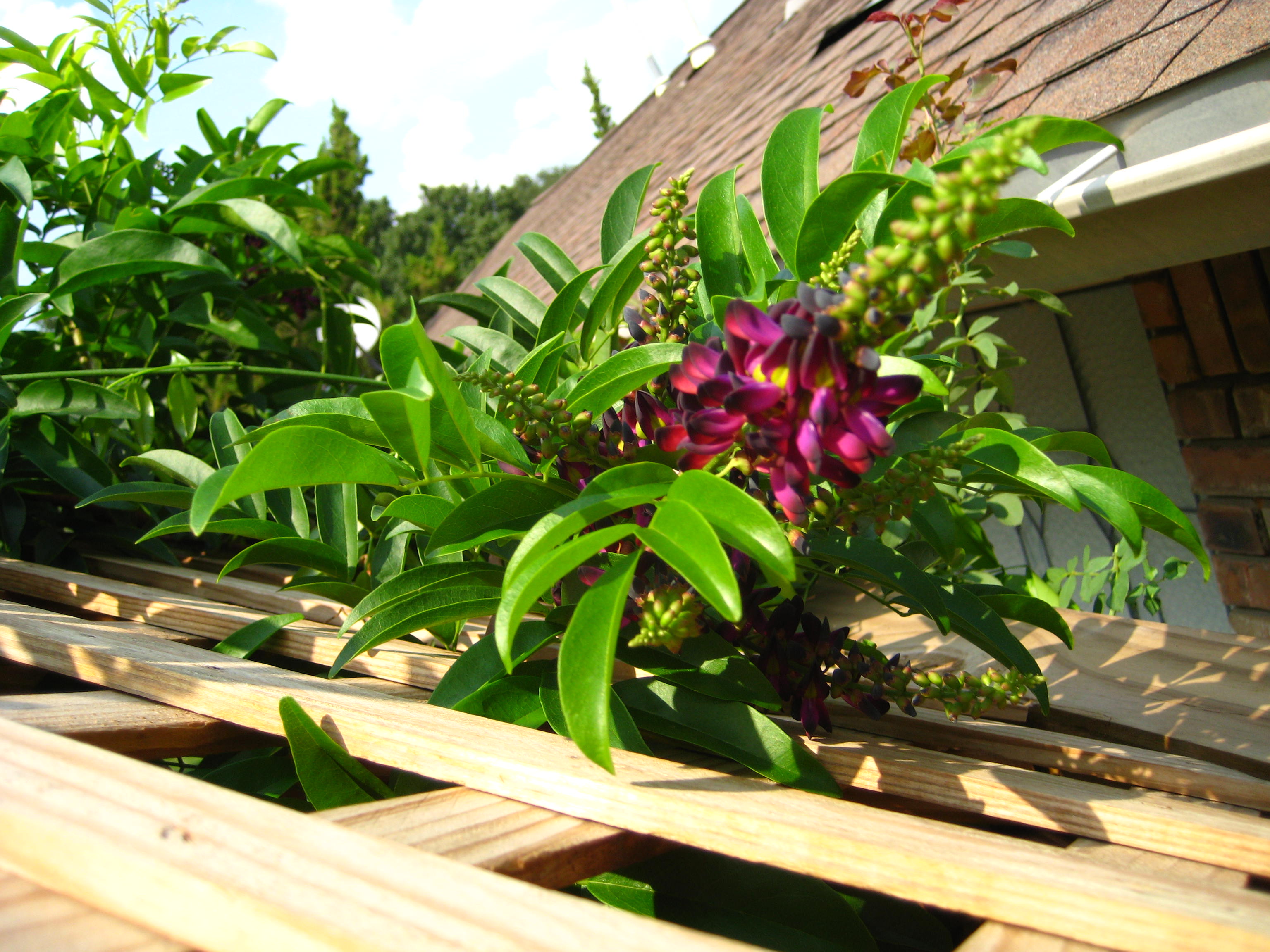 Our arbor looked lovely today with both Don Juan climbing rose and summer blooming wisteria.