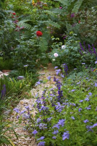 Today our garden path was very beautiful. The rain really helped everything perk up. Love the salvias and russian sage all in bloom. Several Mr. Lincoln Roses also in bloom.