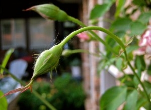 I came home today and found things a little droopy in P&B's garden with my pot sprinklers out of commission. This David Austin Climbing Rose perked up quickly though with a little water from the hose and will be blooming beautifully tomorrow when I get home from work. :)