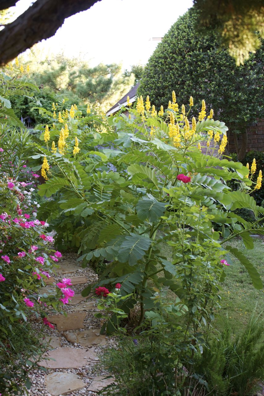 Last year we planted our first Candle Tree. It is an annual for our zone, so we dug it up and bought a new one this spring. We had such a mild winter that it reseeded itself and made 7 more Candle Trees on the other side of the pathway. The flower is magnificent and looks like wax, the cluster of flowers look like a candelabra. It really gave our North Texas garden a very tropical look. Just lovely.