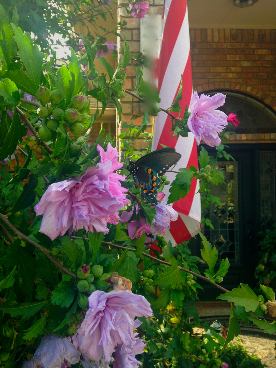 I took a year off from gardening this year and Paul had his hands full. We were infested by white flies. He sprayed every weekend and they are still swarming. In a few weeks we will cut everything back for the fall and hopefully that will solve it. In the meantime, I have gone every Saturday for my fire ant shots with only one reaction and have enjoyed my garden from afar this year. This beautiful butterfly was enjoying it too.